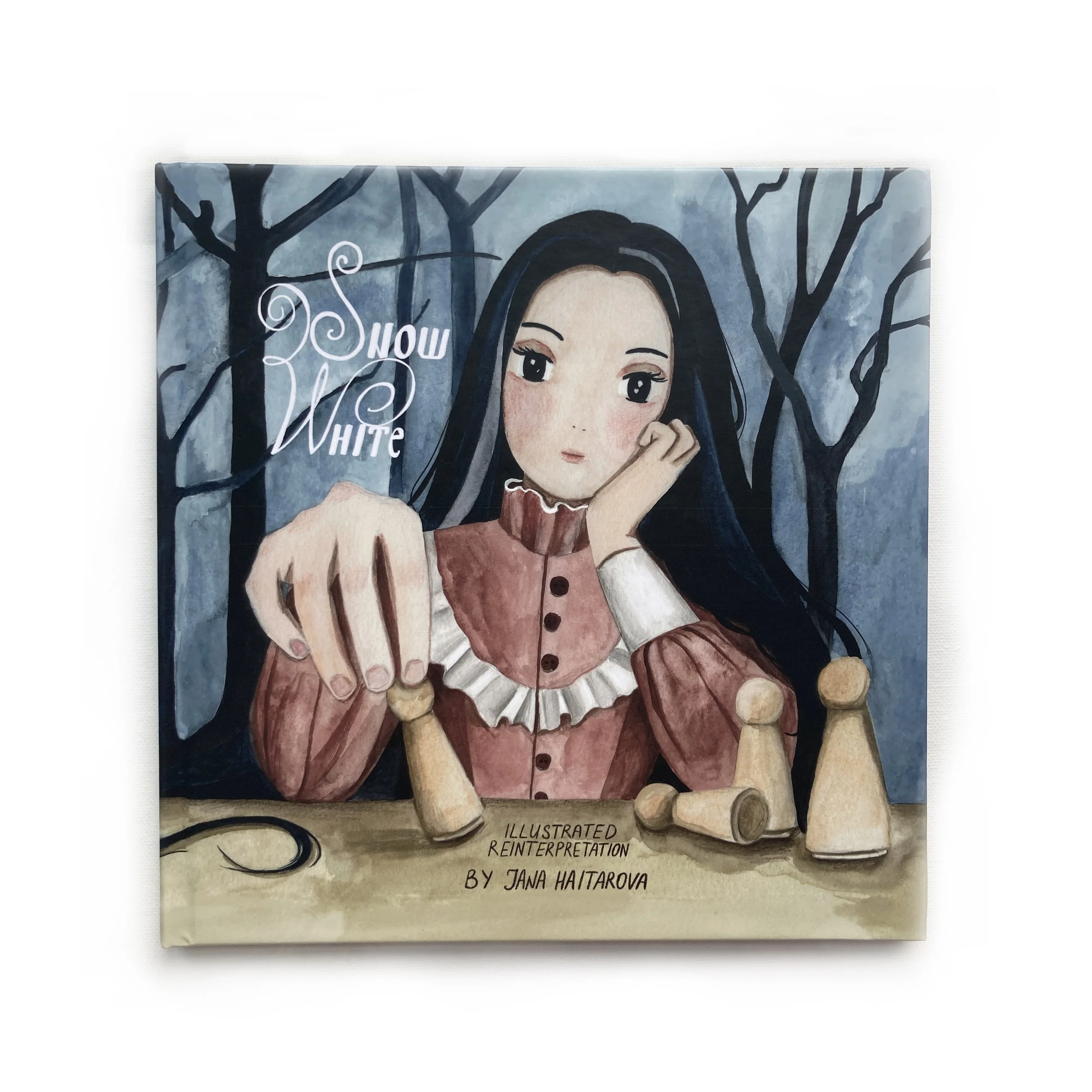 This picture book is a psychological reinterpretation of Snow White, presenting the tale from a realist perspective and focusing on the child’s emotions. Staying true to the original text by the Brothers Grimm, the story is retold solely through its illustrations, creating a dynamic interplay between image and text. With a focus on the emotions of a young child, the book delves into the deeper layers of the narrative, encouraging readers to reflect on fantasy as a coping mechanism. The book features 44 hand-drawn watercolour illustrations. The picture book is available in 3 formats: Paperback Letter, Hardcover Letter and Hardcover Square.